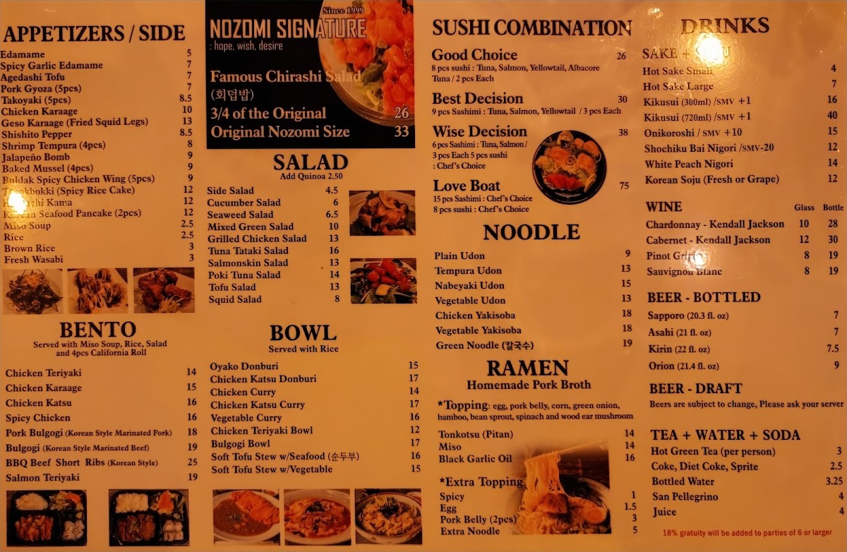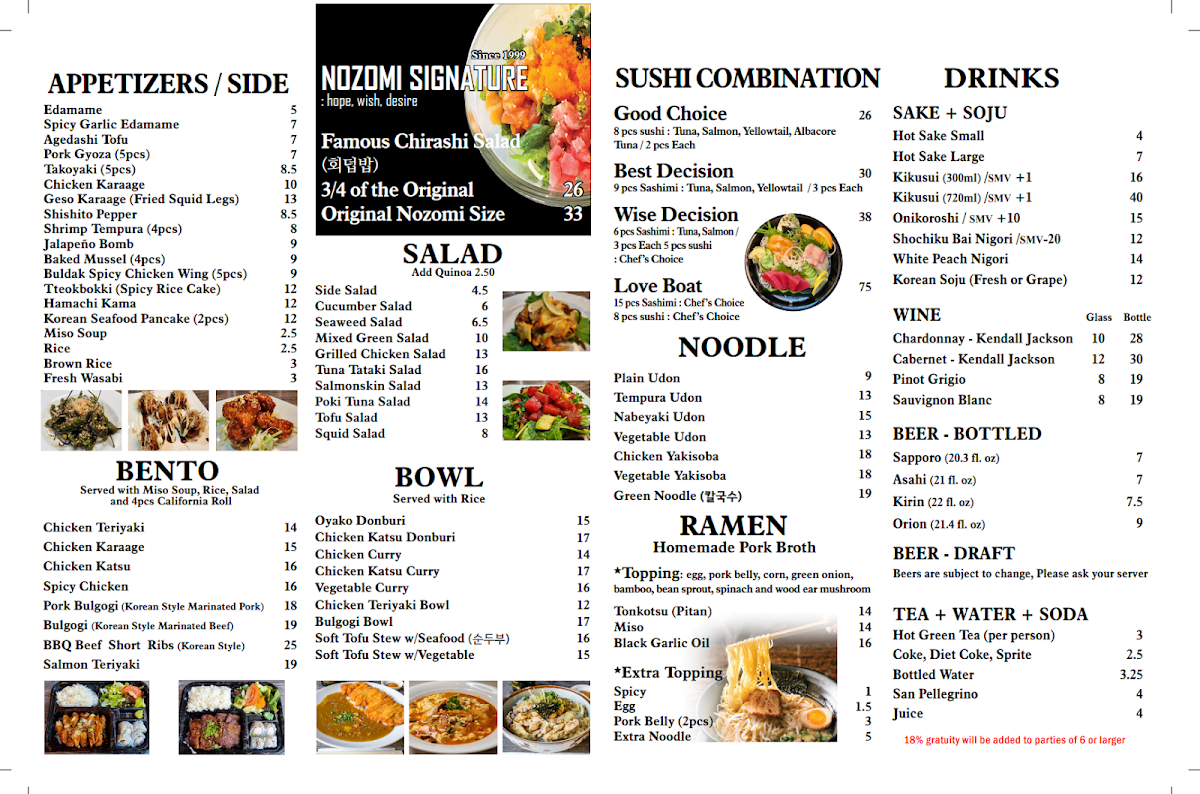 Welcome to Nozomi Sushi La Jolla, a gem nestled in La Jolla, California. This sushi haven is celebrated for its delectable offerings and warm, friendly atmosphere, making it a perfect dining destination for both special occasions and casual outings.